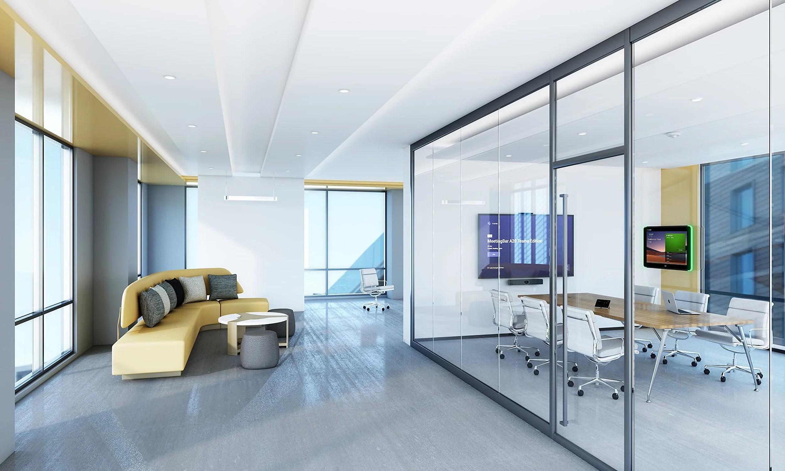 RoomPanel & RoomPanel PLUS are multi-touch room scheduling panels with LED status light bars, allowing users to easily see availability of meeting rooms from a distance. The new RoomPanel PLUS is a 10.1” Panel with a raft of occupancy status integrations built-in.