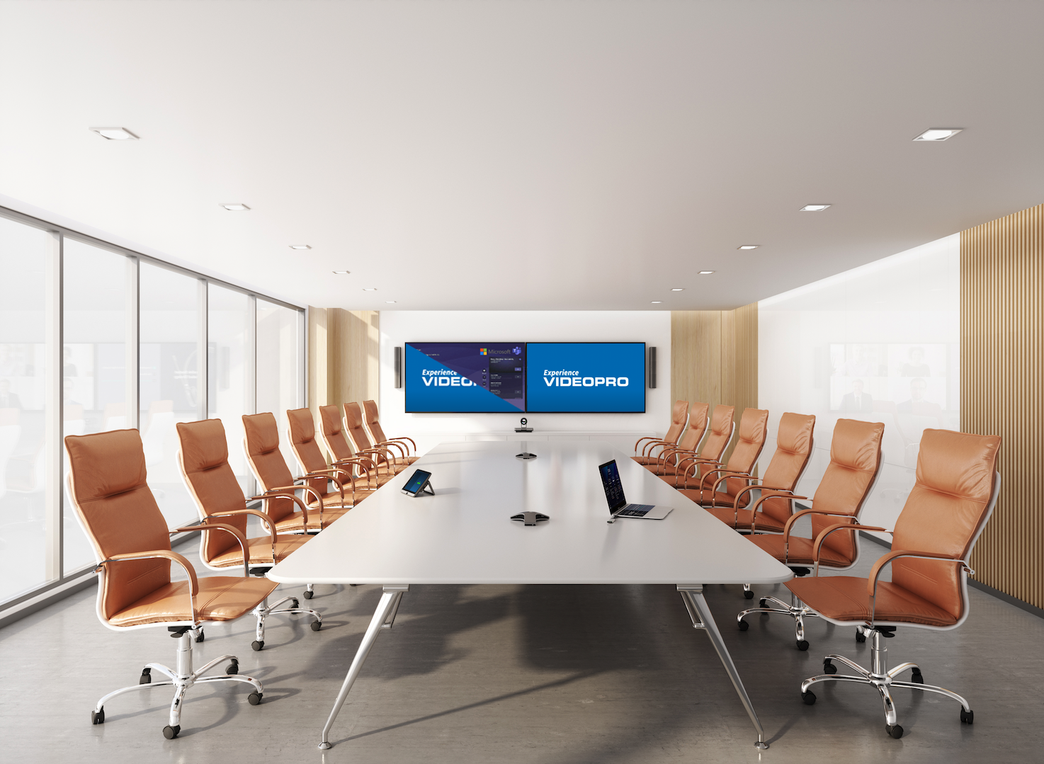 For the Ultra Large Multi Camera & Display solutions, Videopro has incorporated the Q-SYS CORE 8 FLEX DSP with Sennheiser TeamConnect 2 ceiling microphone arrays, Q-SYS amplifier, & Q-SYS in-ceiling low profile speakers.